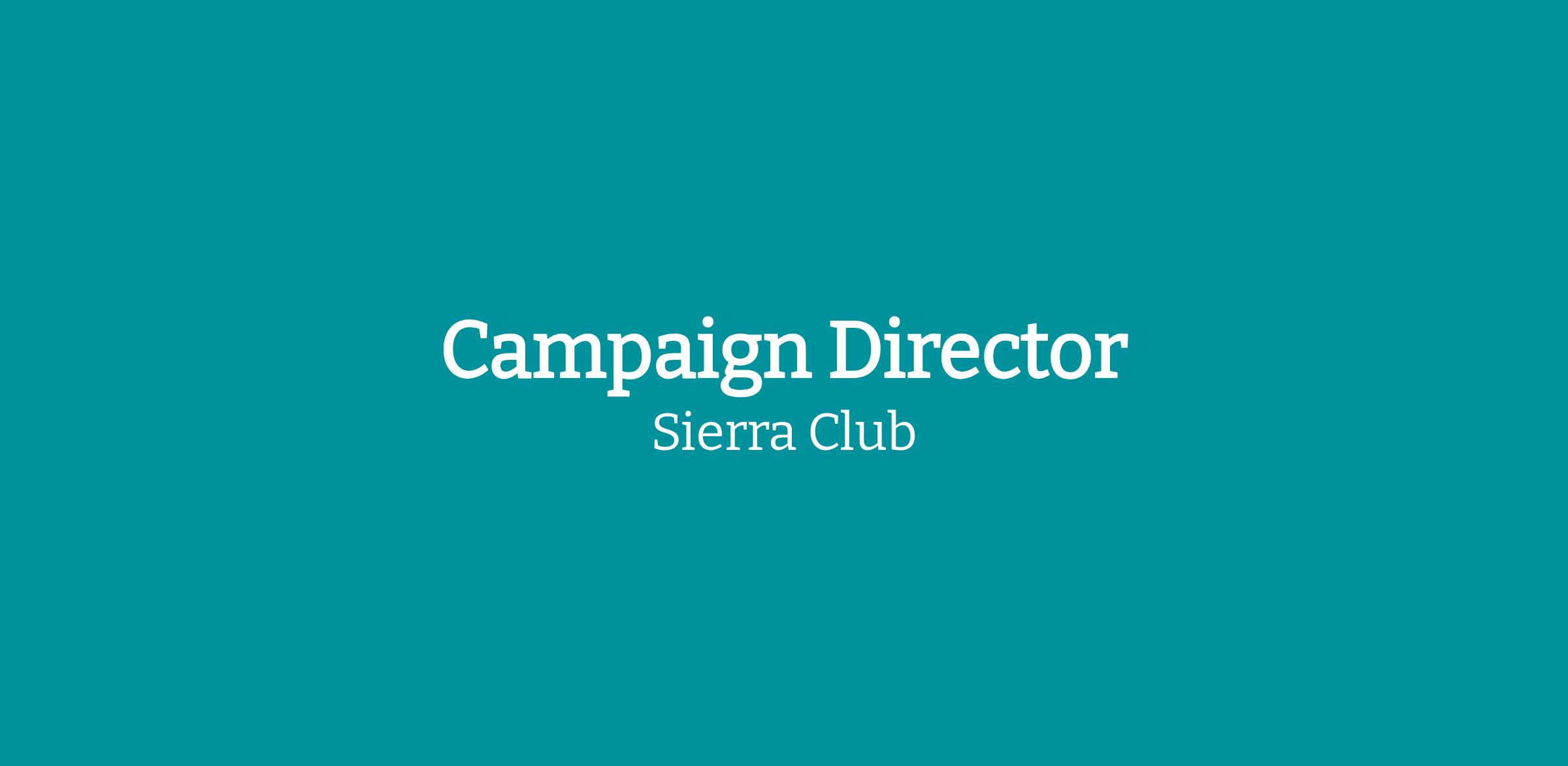 The Campaign Director works alongside a team of Directors as part of Sierra Club’s Energy Campaigns to address climate disruption, transform the energy economy and protect communities from pollution. This is a senior leadership position in the Sierra Club, with responsibility to set strategy, approve local plans, and raise and deploy resources to achieve the organization's top goals.