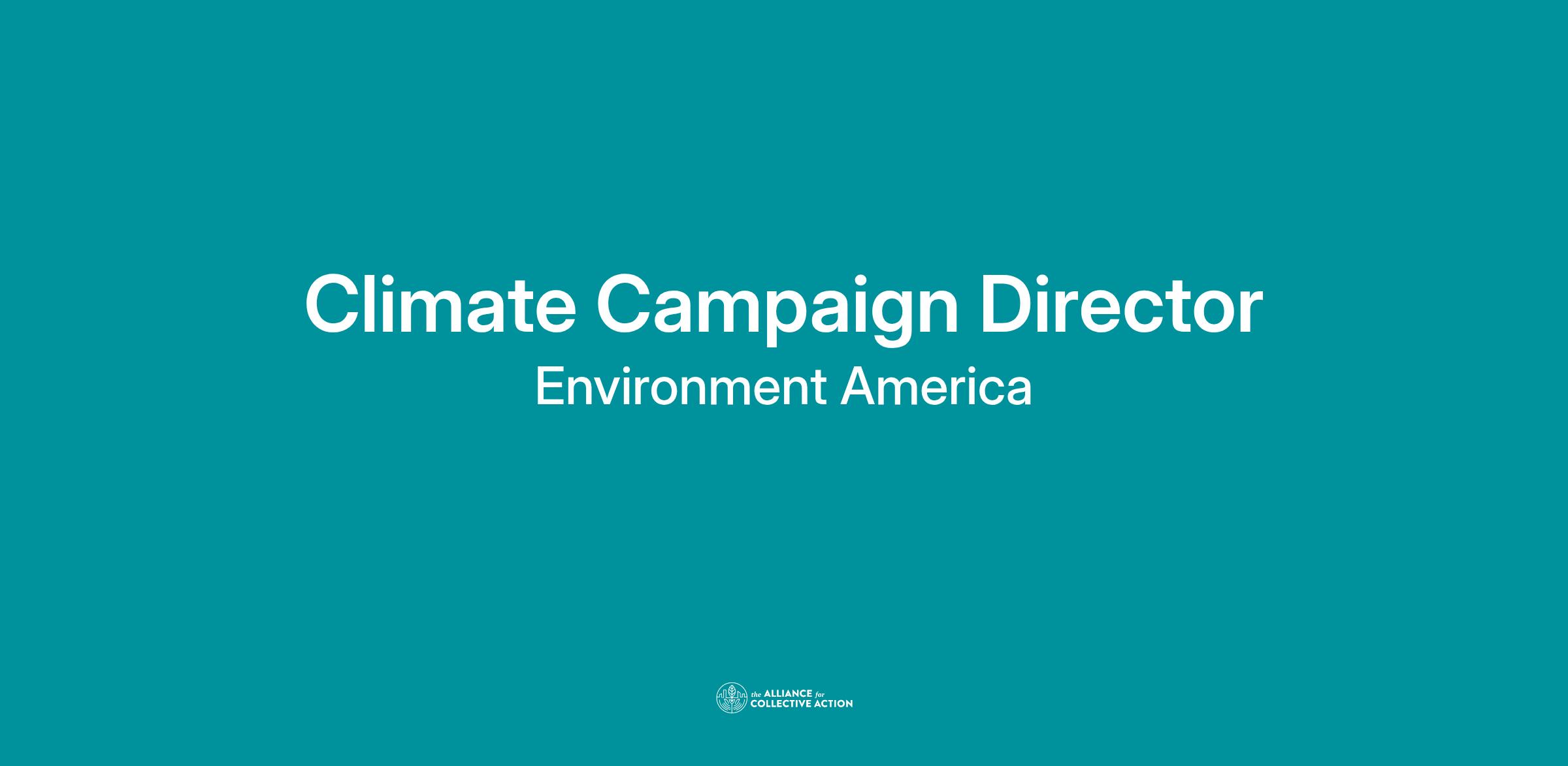 The Climate Campaign Director will represent Environment America and advance our strategy on climate at the federal level as well as working with our state offices across the country to run strategic campaigns to make progress reducing climate pollution. This position requires excellent judgment and discretion and the ability to oversee significant projects. Responsibilities may include but are not limited to: