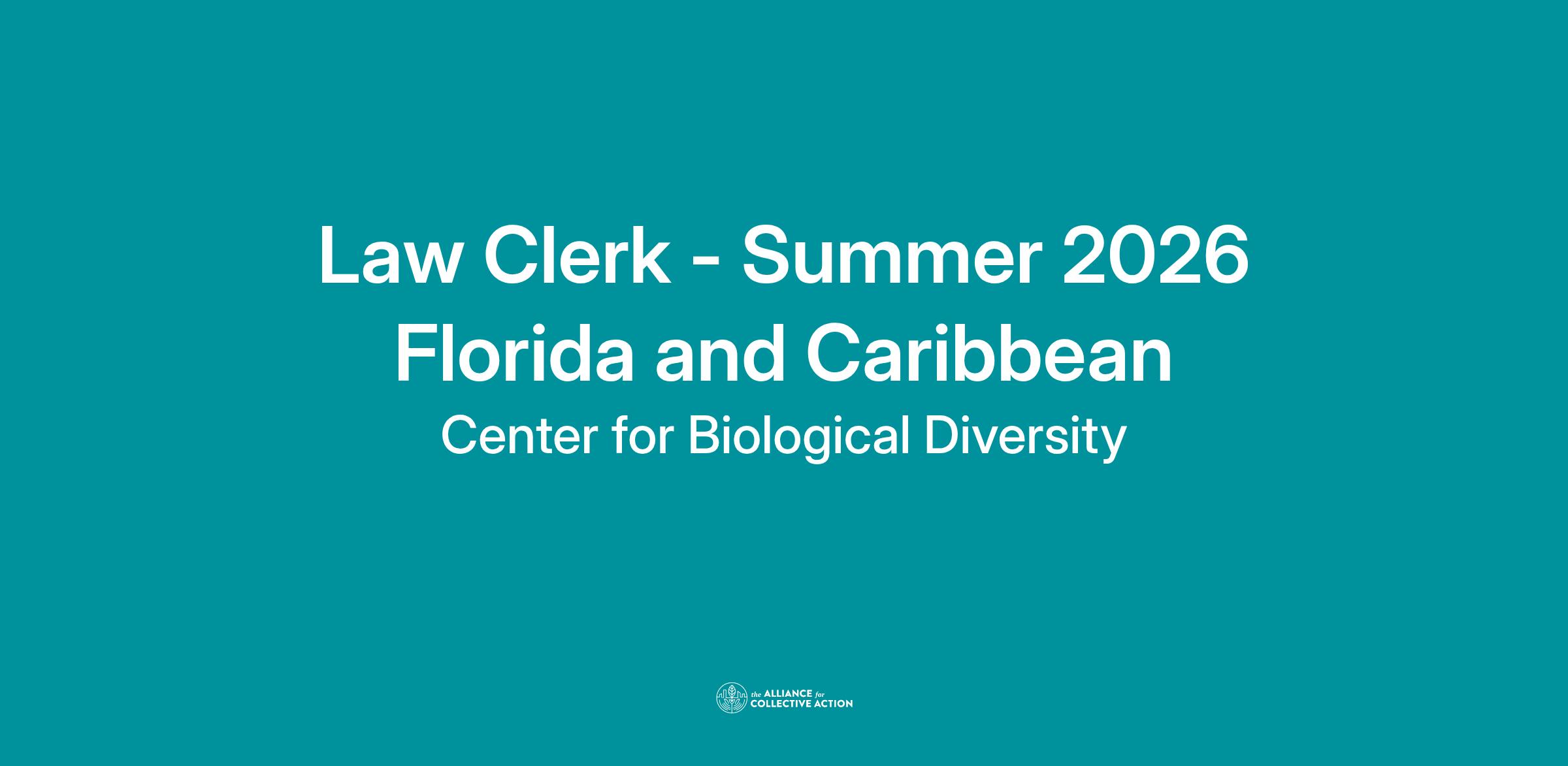 The Center for Biological Diversity’s Florida & Caribbean office seeks a diligent and enthusiastic Law Clerk with a demonstrated interest in public interest environmental law to assist program attorneys with work to protect terrestrial, aquatic, and marine species and their habitat in Florida and the Caribbean.